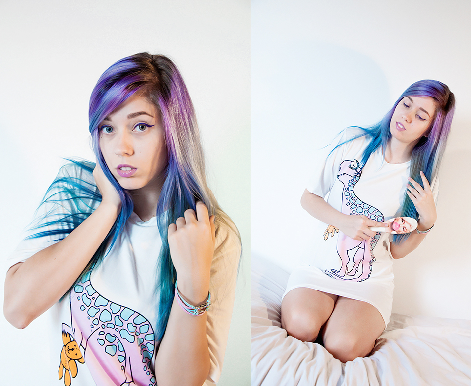 Danas za vas imam nešto potpuno drugačije, spavaćicu! Našla sam je na Zafulu i mislim da je najslađa koju sam ikada videla i definitivno vam preporučujem da je dodate u svoju kolekciju! Mnogo su mi se svideli sitni detalji kao sto su meda i maska za spavanje koju nosi dinosaurus, ali najbolje od svega su pastelne boje koje obožavam. Ovde možete naći narukvicu koju nosim, a čarapice sa printom sladoleda su sa ebaya i veoma jeftine za nešto ovako interesantno! ☺